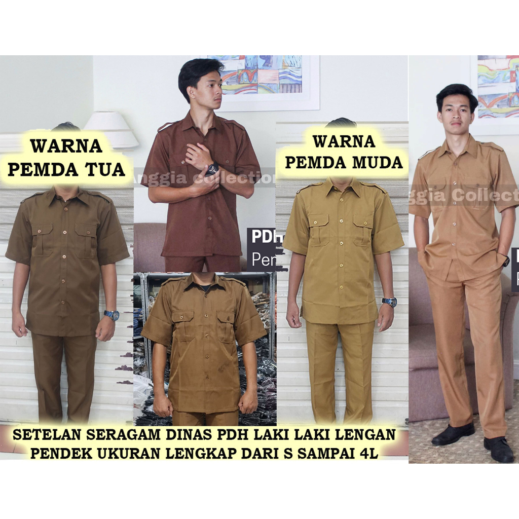 setelan baju dinas PDH laki-laki lengan pendek warna pemda tua-biru dongker-pemda muda ukuran dari S sampai 4Li