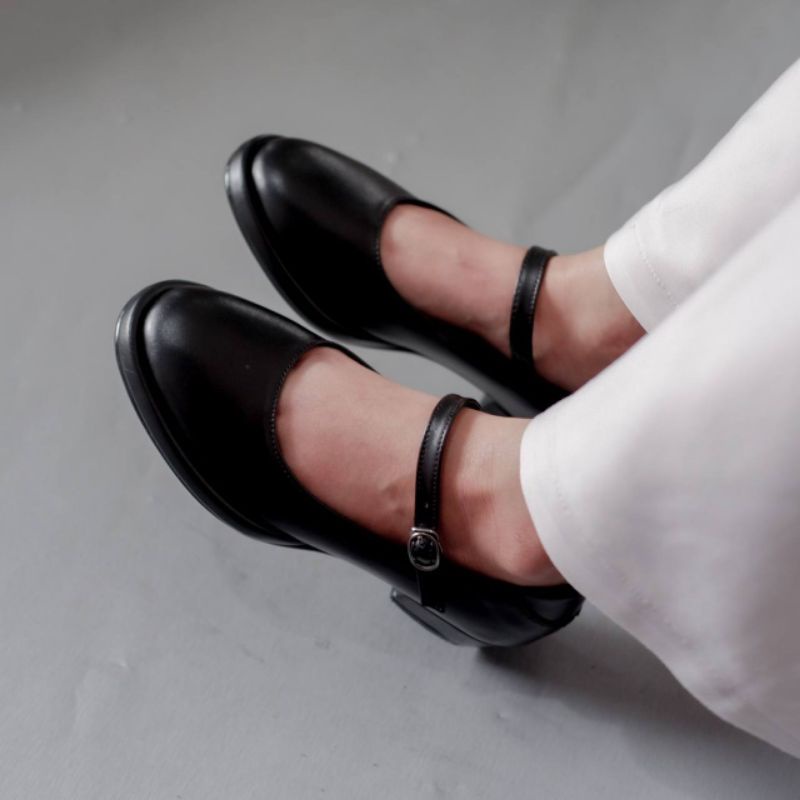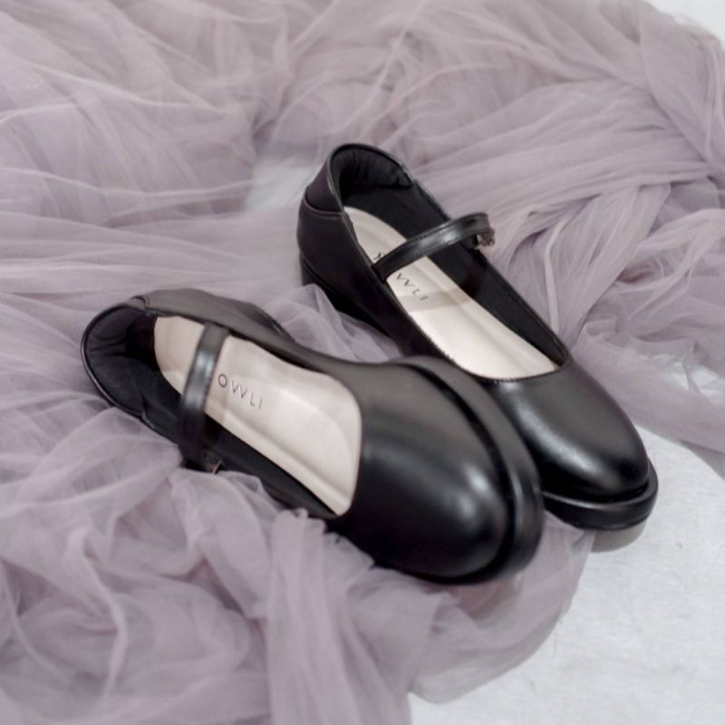 Yovvli Nabila Flatshoes Sepatu Kerja Wanita Hitam Empuk Kulit Artificial Hak 3 cm