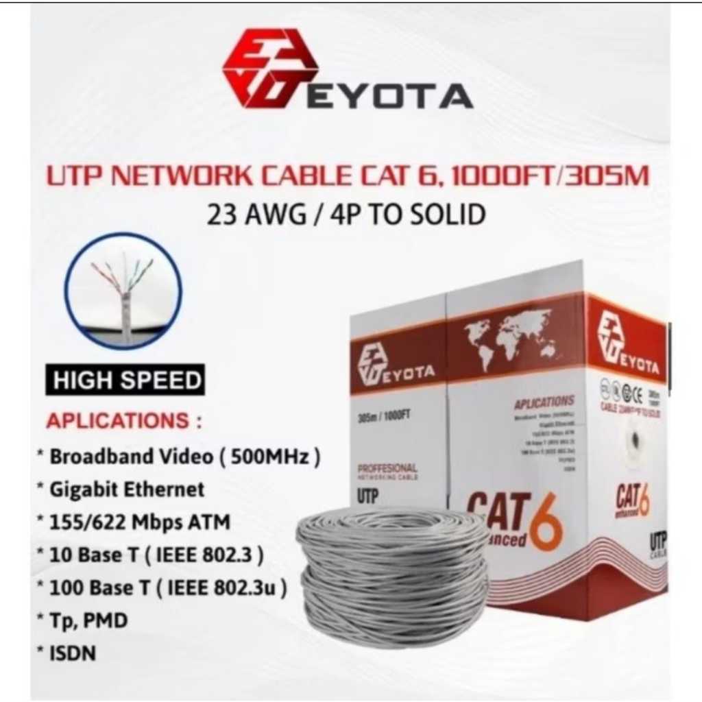 KABEL LAN UTP / FTP CAT 6E EYOTA 300 METER SUPPORT POE KOMPUTER PC LAPTOP DESKTOP CCTV