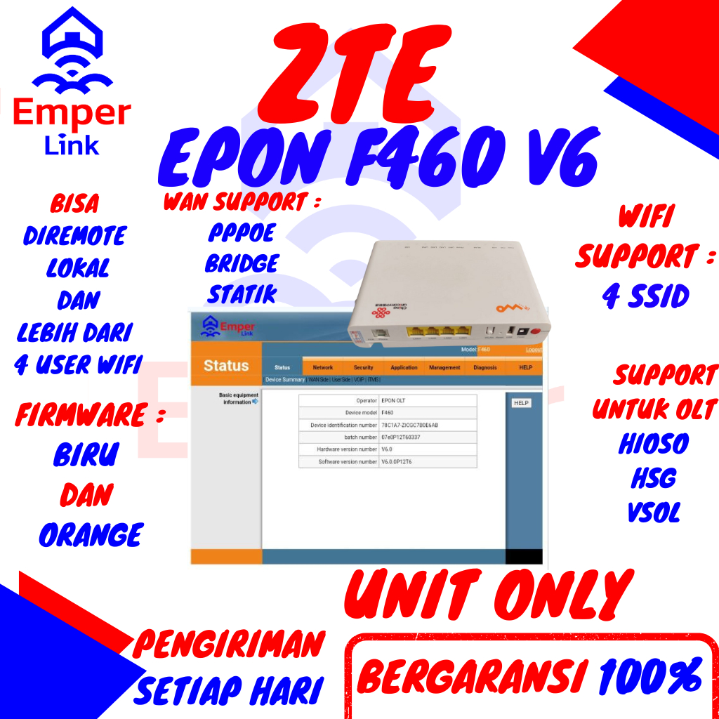 ZTE F460 V6 F460V6 EPON FIRMWARE BIRU FIRMWARE ORANGE PPPOE VLAN STATIC BRIDGE ALL OLT HIOSO HSGQ