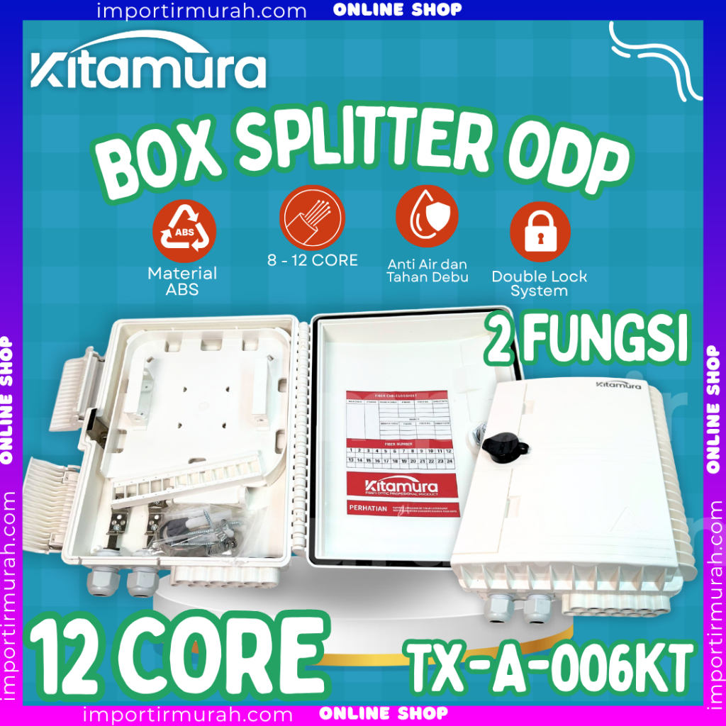 ODP 12 Core Model Box Splitter | Box ODP Combo 8/12 Core Double Lock Kosongan | ODP Tiang Kitamura Bahan ABS Tebal