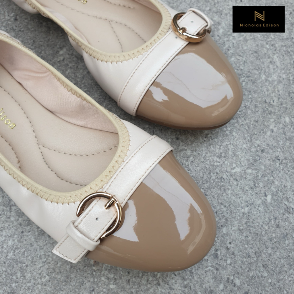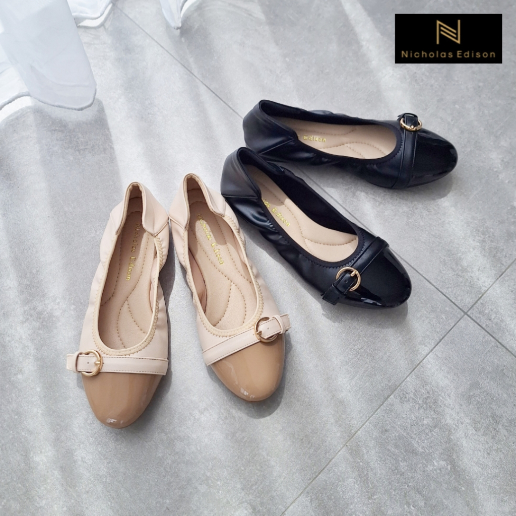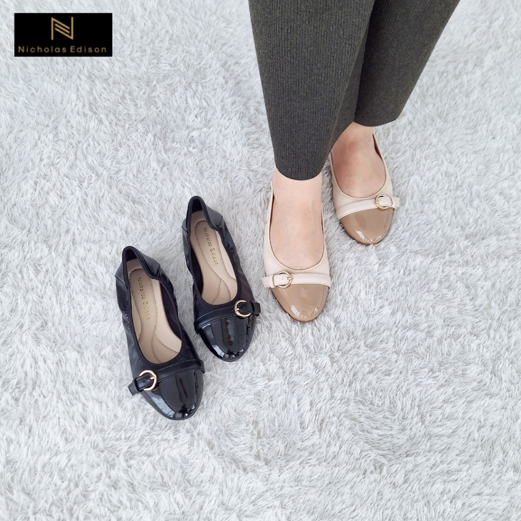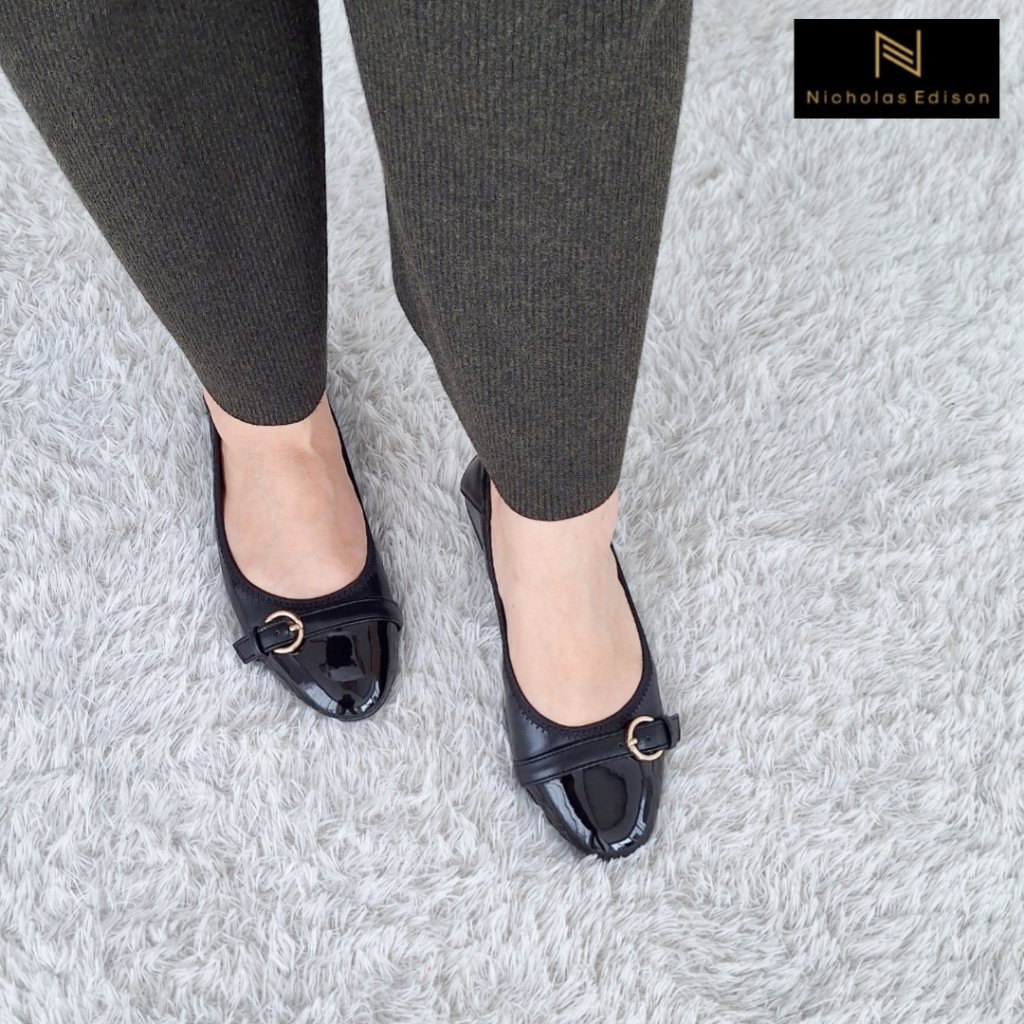 Nicholas Edison Flat Laura Sepatu ballerina elastis gesper nyaman
