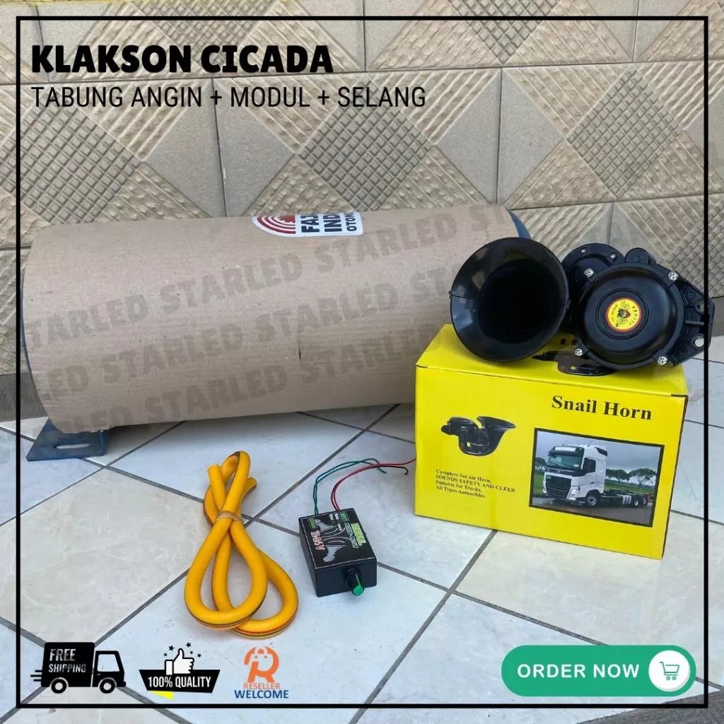 1 SET KLAKSON TRUK VOLVO SCANIA KOMPLIT FULLSET TABUNG ANGIN 12 VOLT - 24 VOLT KLAKSON TRUK KEONG CICADA 12V 24V