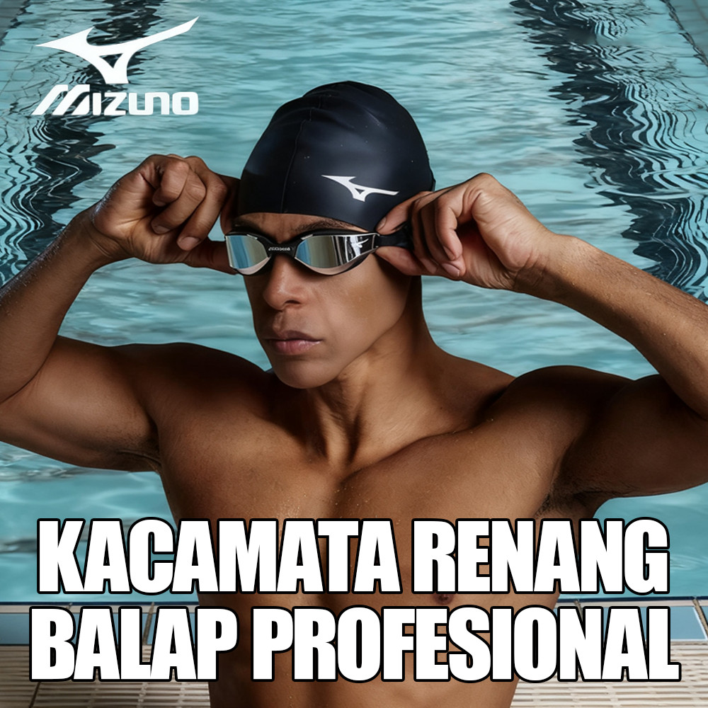 Mizuno Kacamata Renang Profesional Pria - Anti Air / Anti-Kabut / UV Protection HD Super Bening / Nyaman Pakai untuk Bal