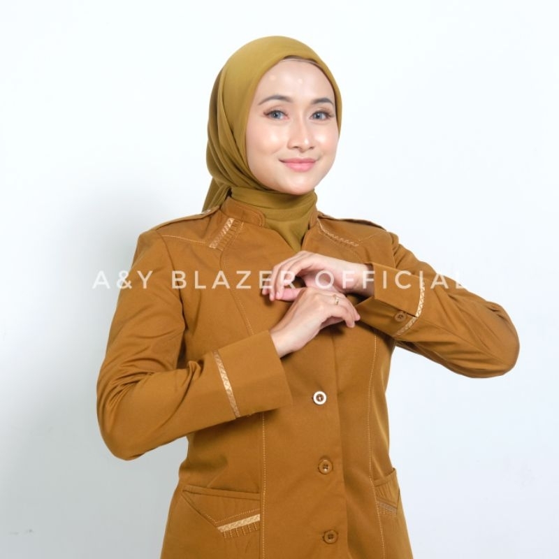 [03] A&Y Blazer Baju Seragam pemda PDH Guru / PNS Wanita Warna KHAKI TUA Terbaru | BAHAN SEMIWOL | Seragam Kerja Dinas P