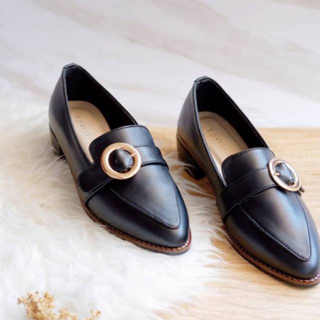 YOVVLI SORAYA Flatshoes Sepatu kerja wanita hitam empuk kulit artificial hak 3 cm