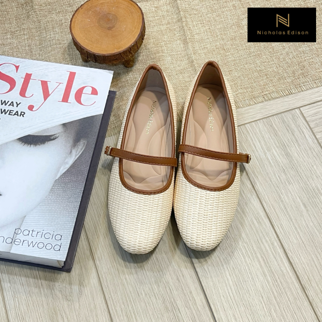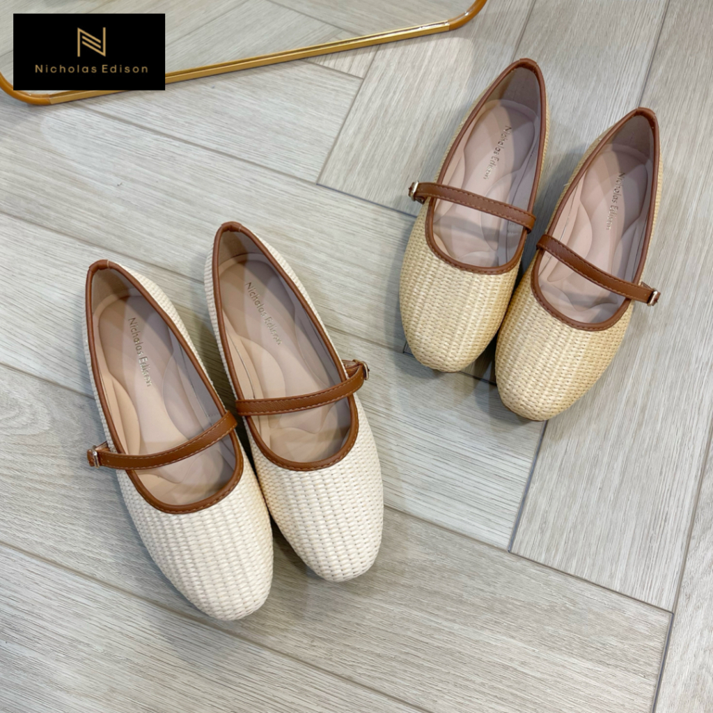 Nicholas Edison Flat Catalina Sepatu Ballerina Round toe anyam terbaru