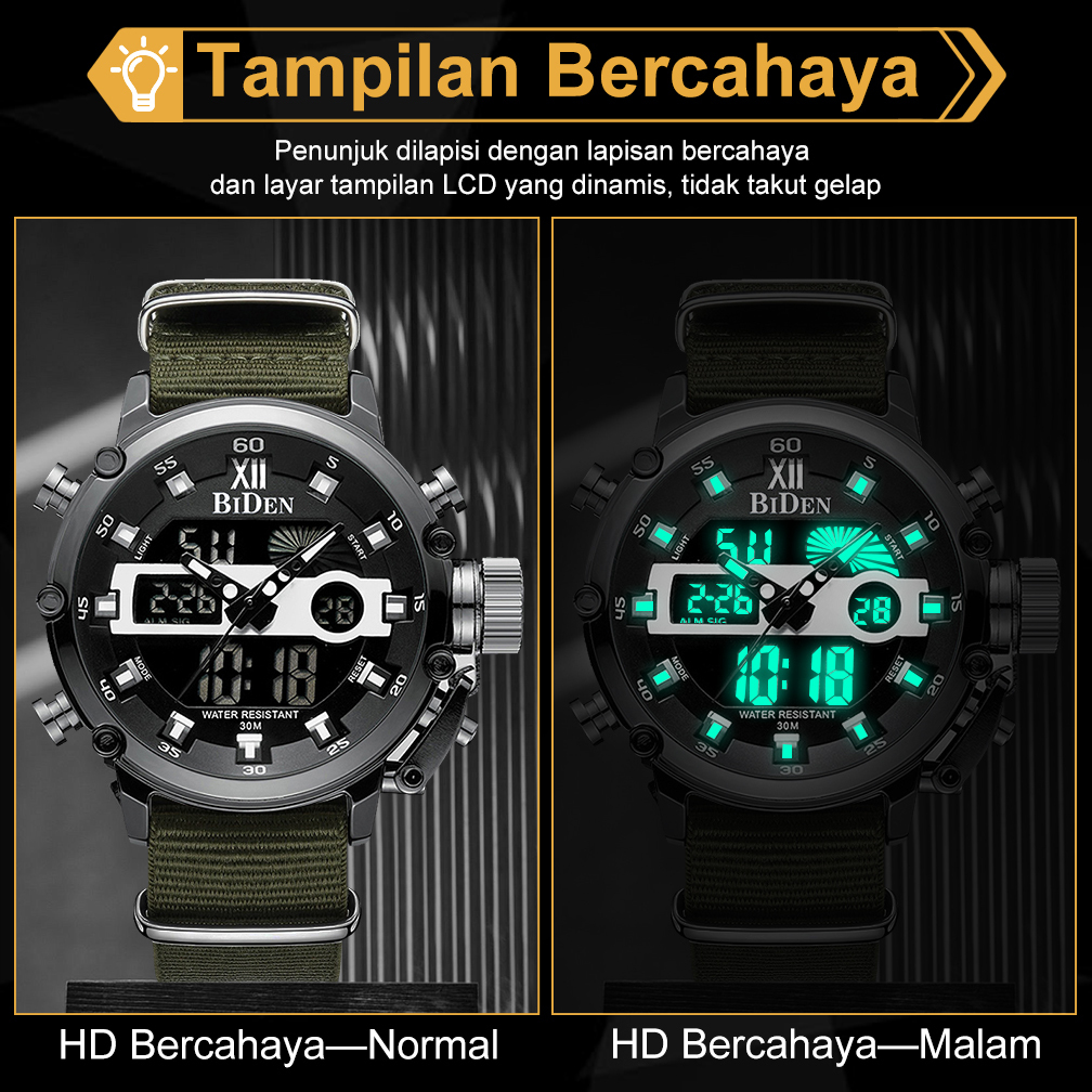 BIDEN Jam Tangan Pria Anti Air Digital Analog Multifungsi Nilon Olahraga Militer Waktu Ganda Jam Tangan Cowok Original