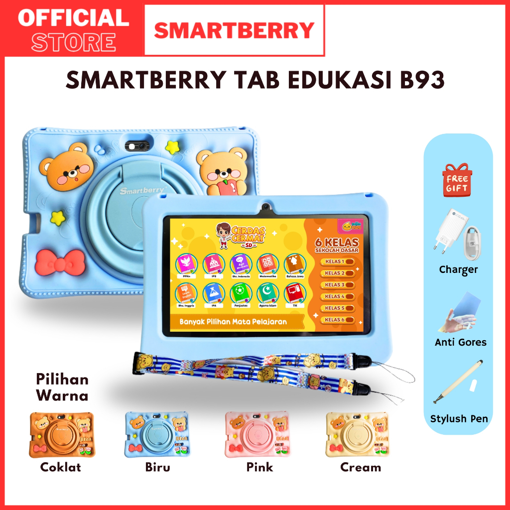 SMARTBERRY KIDS STUDY TAB B89 Plus / B93 / B95 / 4/128GB / Tablet Anak / Hadiah Anak / 7 Inch / PC / Android 13 / 2 Came