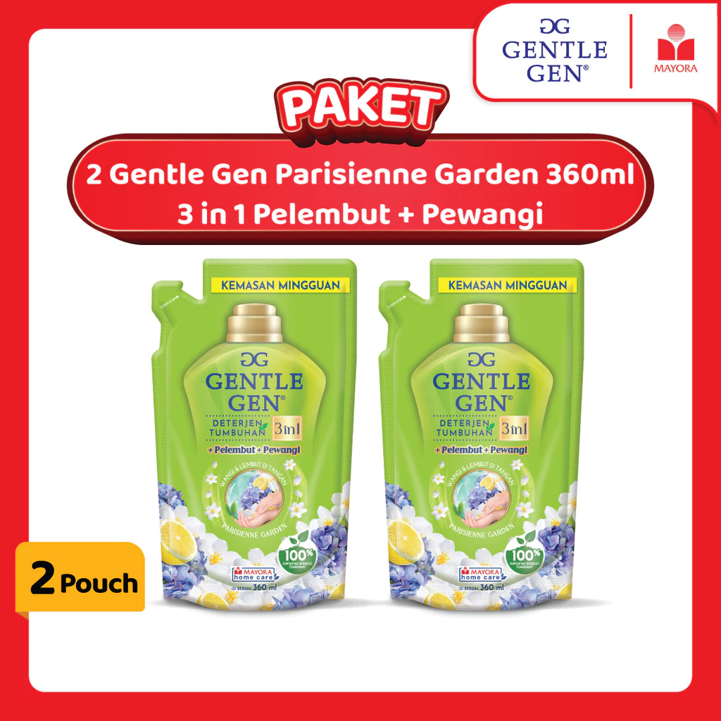 Gentle Gen Official Store | Deterjen Cair Gentle Gen Parisienne Garden 3in1 Pelembut + Pewangi Pouch 360ml / 1,5 Liter