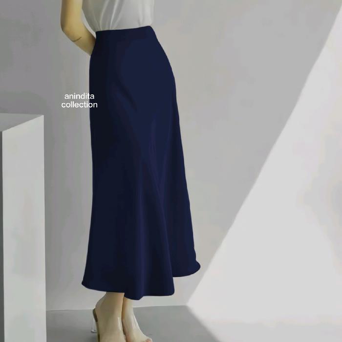 Rok Skirt Wanita Polos Korean Style Bahan Crinkle Airfow Karet Nyaman Panjang Pink Remaja Melar