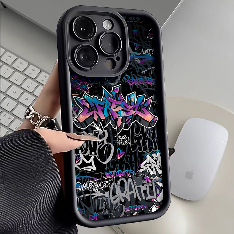 Grafiti hitam untuk case infinix smart 5 6 7 8 pro plus hot 9 10 11 30 play hot 30 40 pro 40i 30i note 30 40 pro 12 g96 gt 10 pro 2024 10 10c 20 20c casing hp Lucu manis SoftCase Wanita Penuh