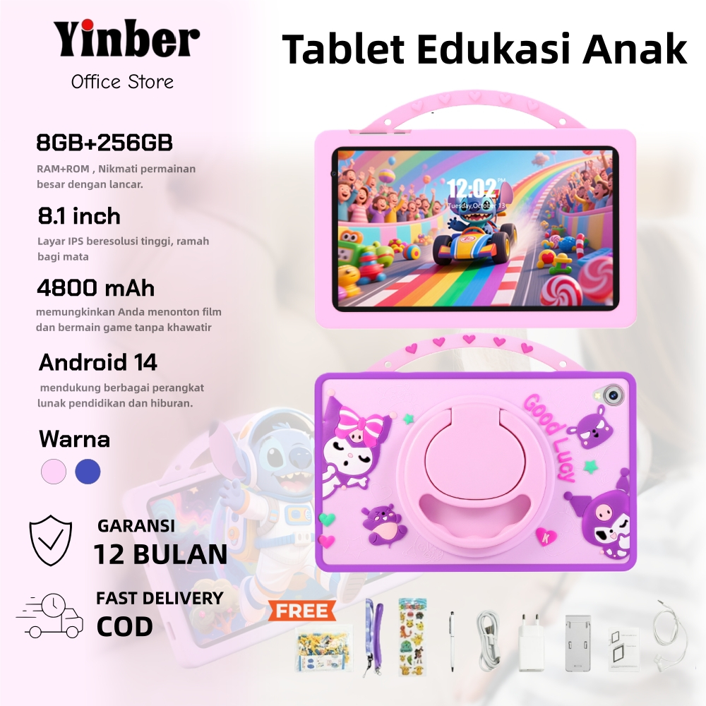 Yinber Tablet Anti Radiasi Anak F16 8GB+256GB 8.1inch Layar Tablet Dual Sim Card 4G LTE Tablet Anak Android Belajar Tabl