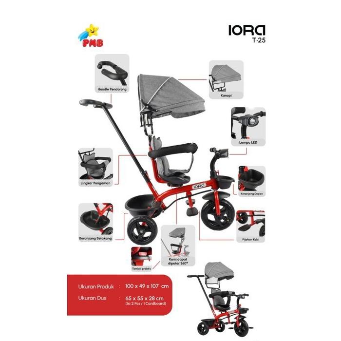 SEPEDA RODA TIGA ANAK//TRICYCLE ANAK ADA DORONGAN,LAMPU,KANOPI & MUSIK\\STROLLER BIKE IORA T-25