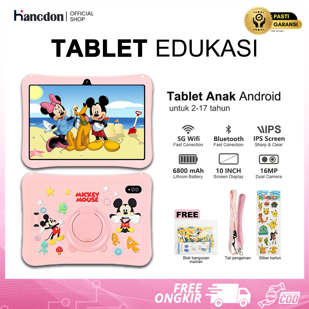 Hancdon Tablet Anak Ram 12/512GB Touch Screen 10.1inch Android 14 Kids Tablet 2 Kamera Whatsapp Play Store Bisa WiFi Tab