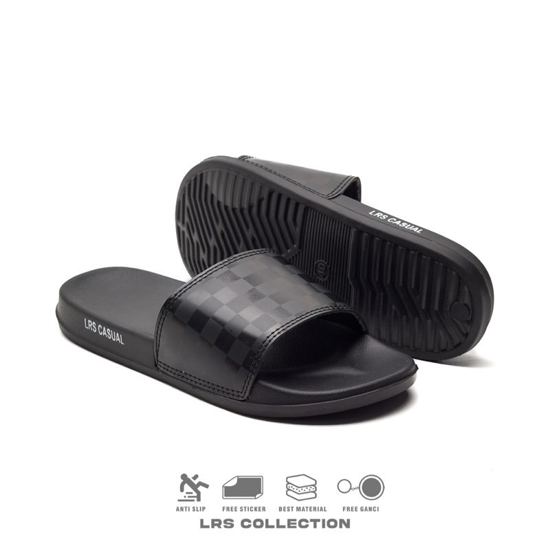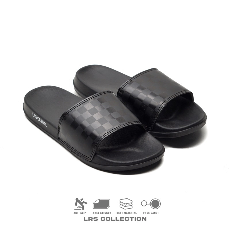 Lrs Casual - Sendal Slop Distro Pria Footwear Original Catur Checkerboard Hitam Shoes Sandal Black