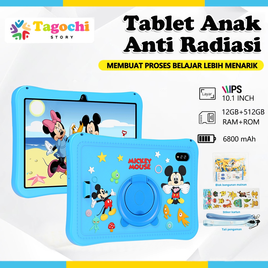 TAGOCHI Tablet Anak Ram 12/512GB Touch Screen 10.1inch Android 14 Kids Tablet 2 Kamera Whatsapp Play Store Bisa WiFi Tab
