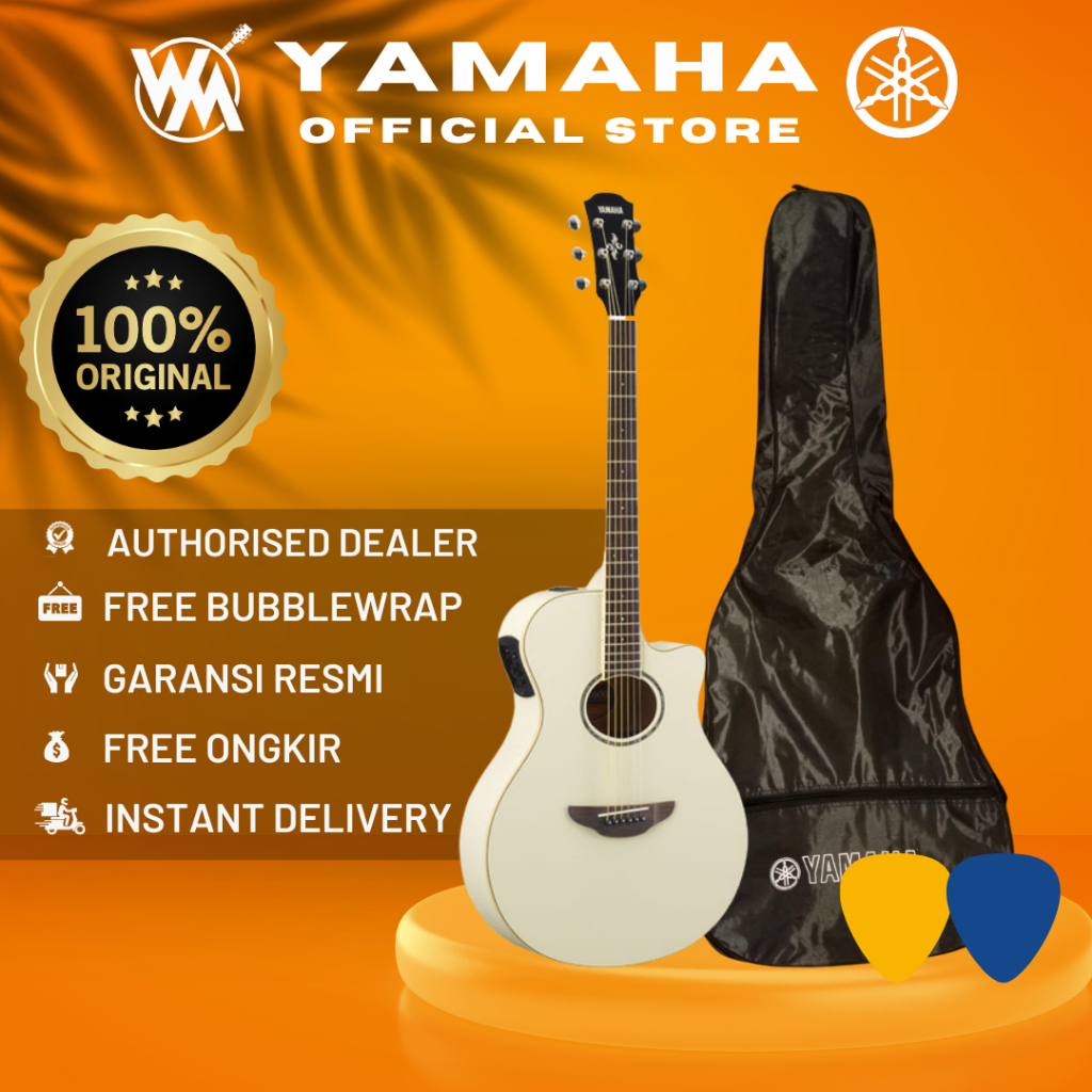 Yamaha Gitar Akustik Elektrik APX 600/ APX600/ APX-600 - Vintage White + Gratis Softcase + 2 Pick