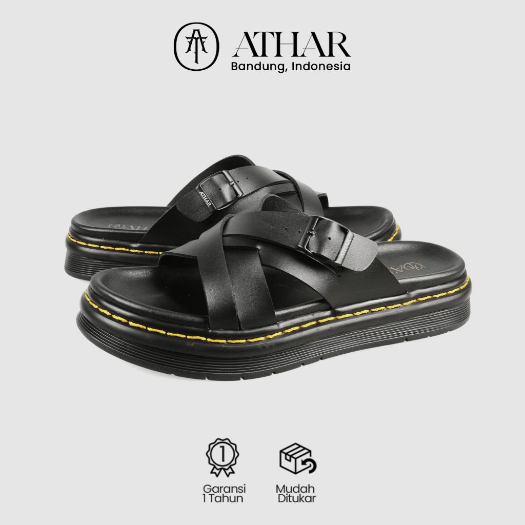 Athar - Sandal Kulit Pria Wanita - Hideo Black