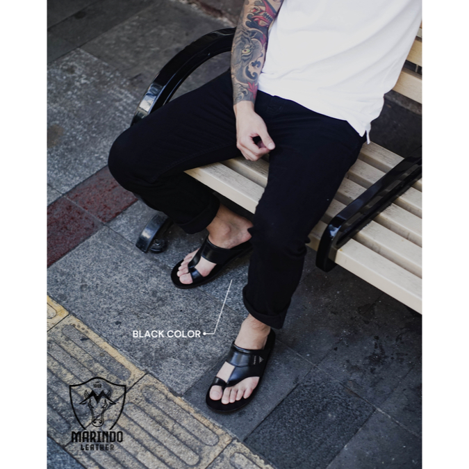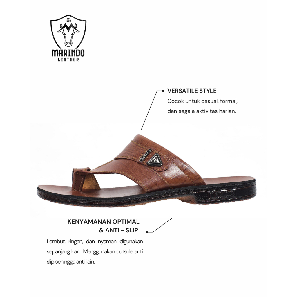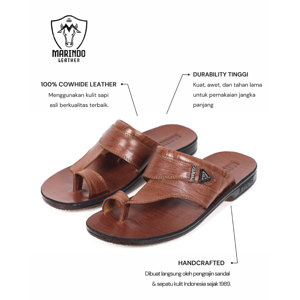 Sandal Pria | Sandal Kulit Pria Perkasa | 100 PERSEN Kulit Asli | Gratis Ongkir | Marindo "Veteran" Tan & Black