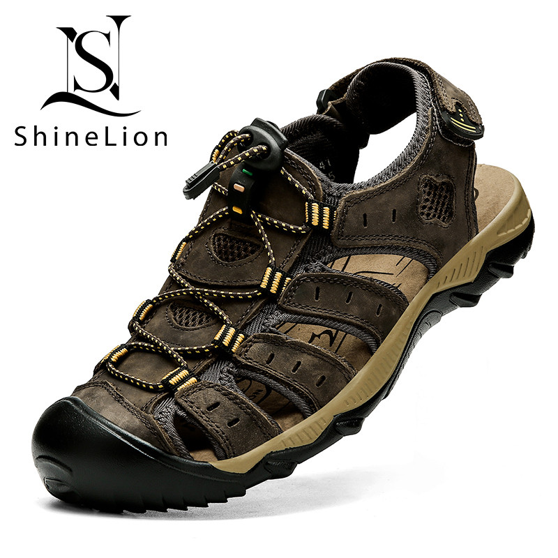 ShineLion KP-2026 Sandal Kulit Asli Pria Original Casual Ringan Olahraga Bernapas Sepatu Sandal Gunung Pria Outdoor Anti