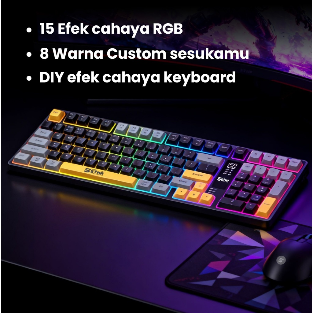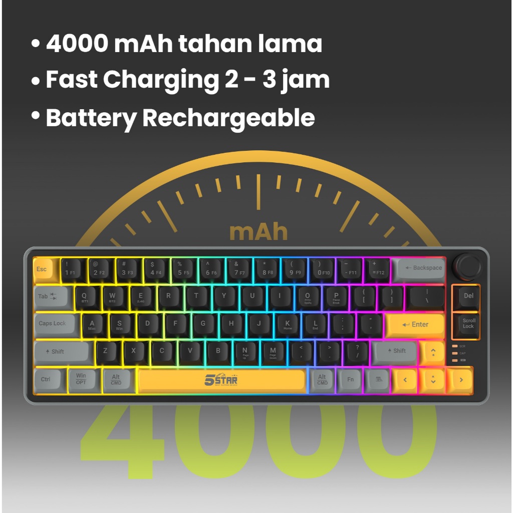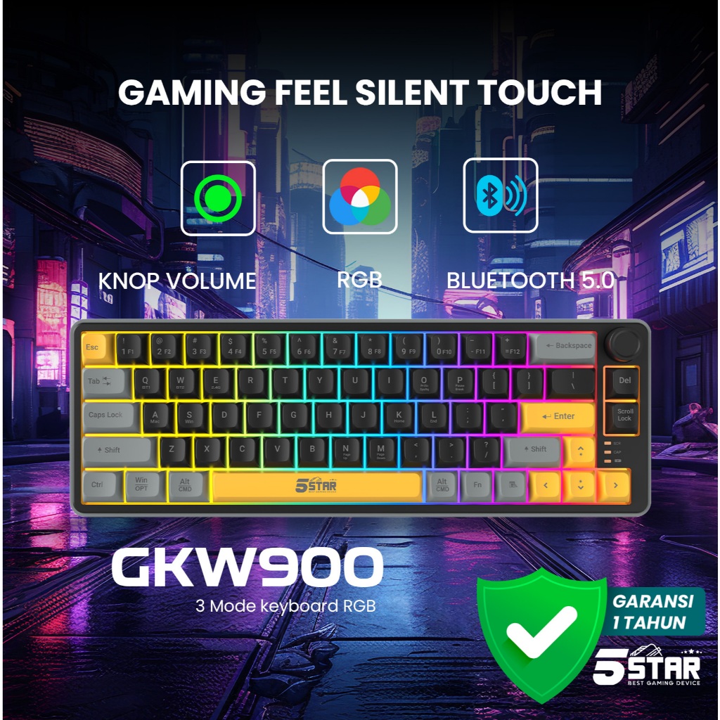 5Star Keyboard Gaming Wireless Silent klik Untuk gaming malam Bluetooth Tabel PC Laptop HP GKW900
