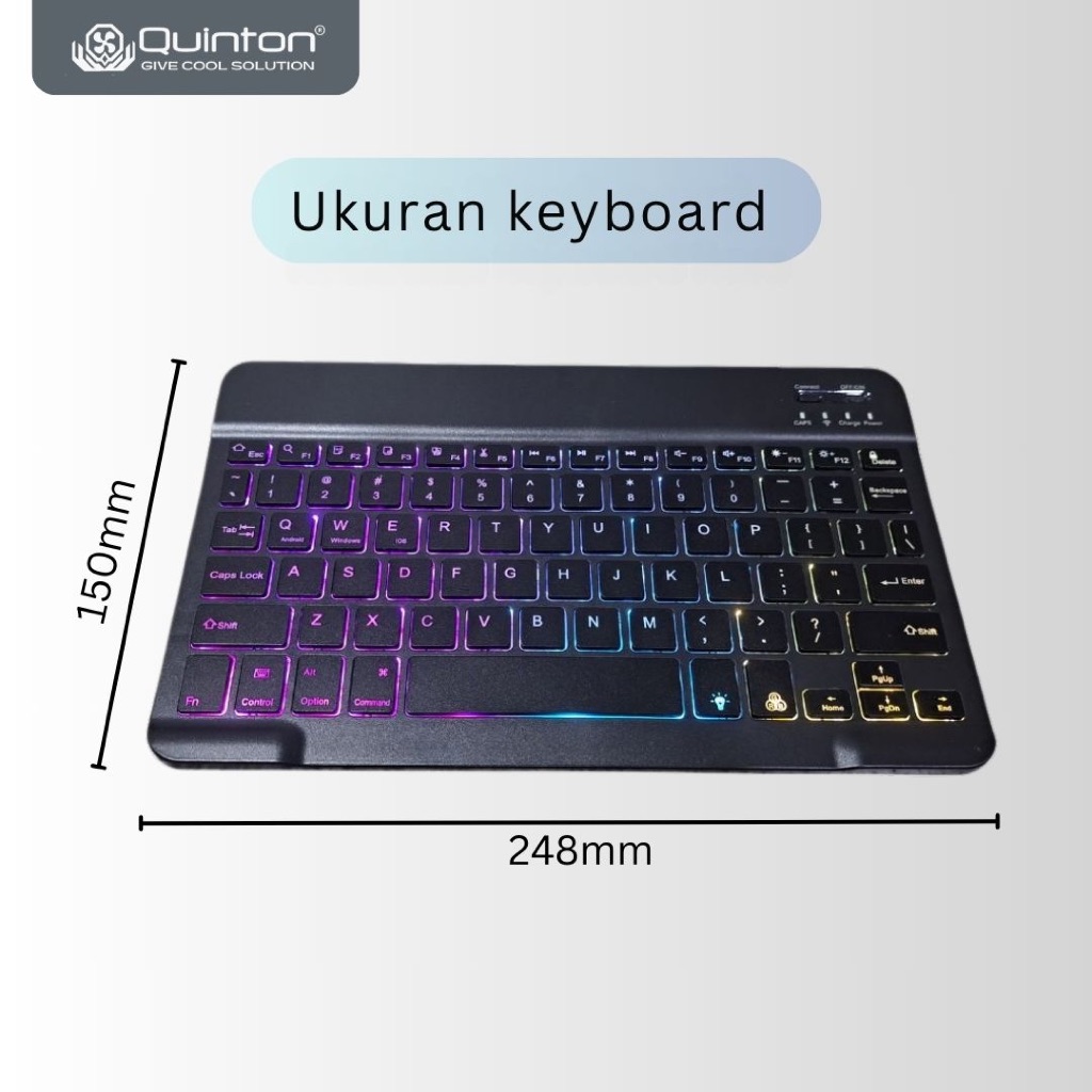 Keyboard Wireless Bluetooth 10 Inch Led RGB recharge slim - untuk Laptop, HP, Tablet & Smart TV