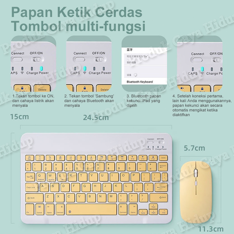 【】10 inch Wireless Bluetooth Keyboard Touch keyboard Lightweight Portable Set keyboard mouse nirkabel For Android Window