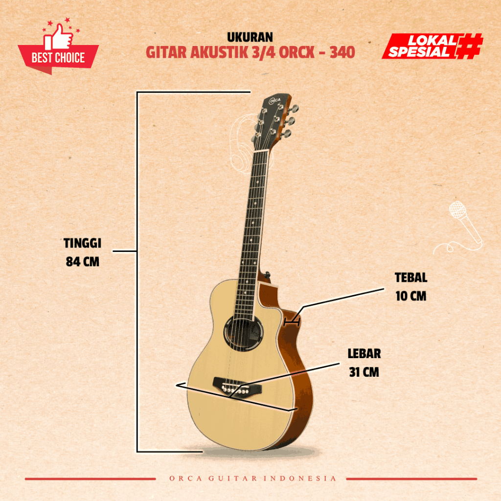 ORCA Gitar Akustik 3/4 Tanam Besi ORCX - 340 Senar String Guitar