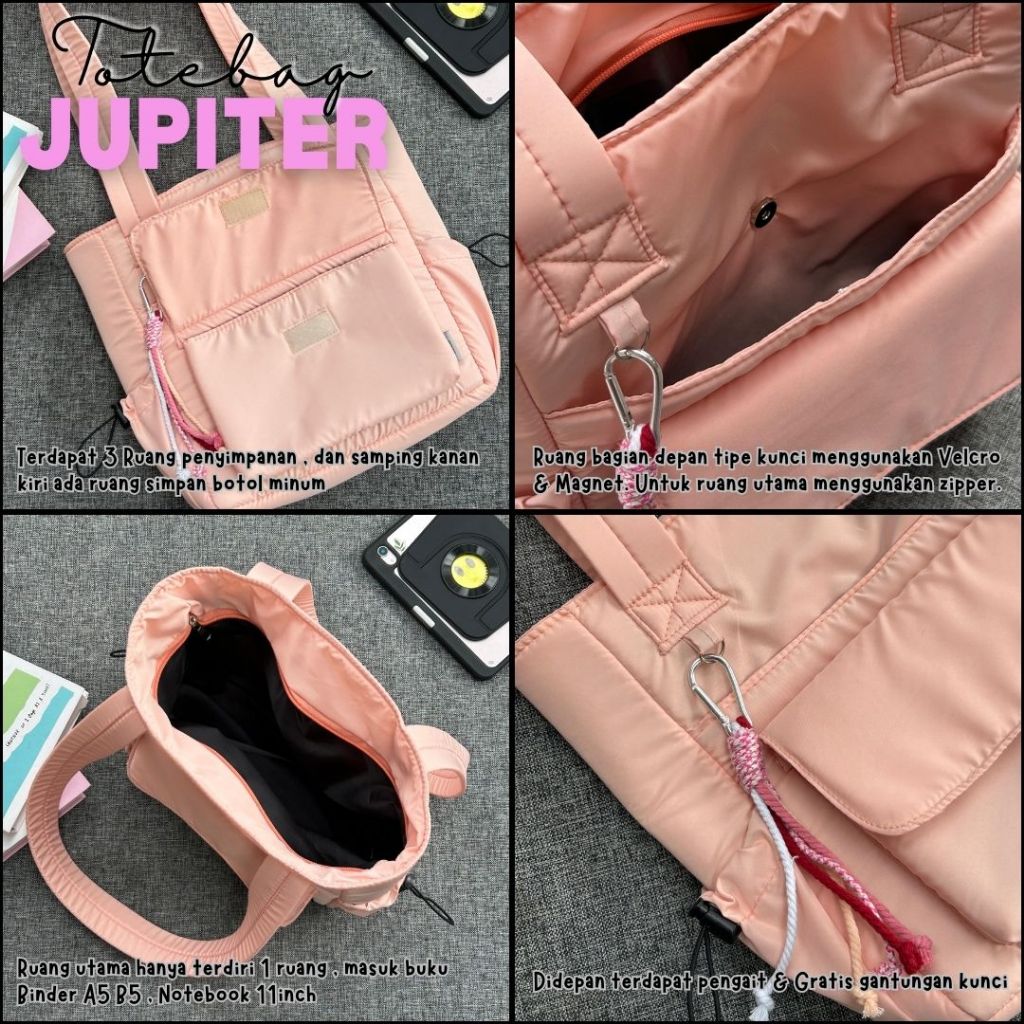 Jupiter - Totebag Fit 11 inch Gratis Gantungan Tas Wanita Kuliah Parasut Waterproof Tab Ipad
