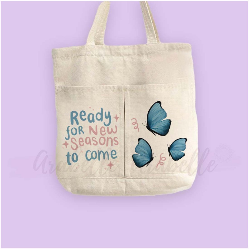 Totebag Kanvas Dua Kantong Bergambar Kupu Kupu Quotes/Totebag Kanvas/Totebag Sekolah/Totebag Jalan Jalan/Bisa