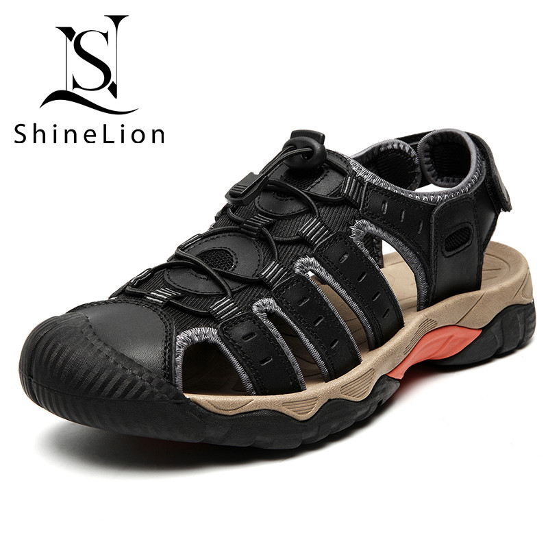 ShineLion KP-2119 Sandal Kulit Asli Pria Kekinian Terbaru 2025 Trendy Terbaru Original Sepatu Sandal Pria Keren Ringan B