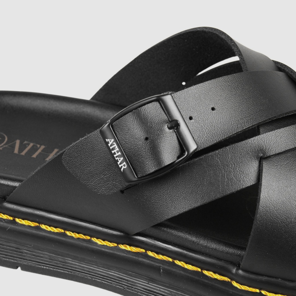 Athar - Sandal Kulit Pria Wanita - Hideo Black