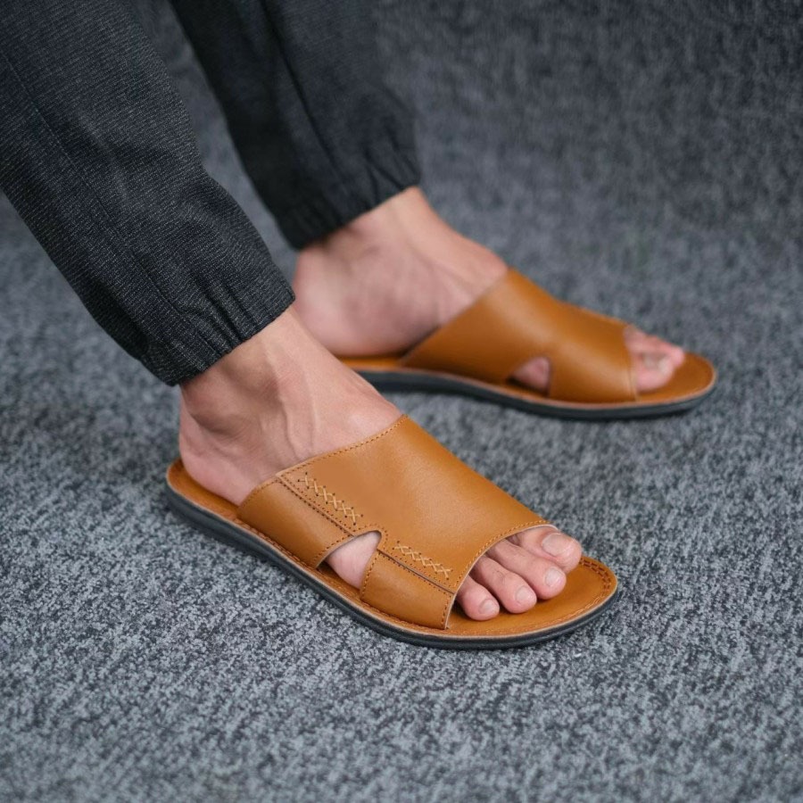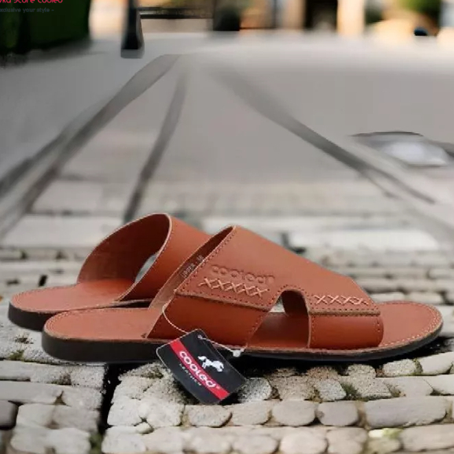 COOLED Sandal Selop Kulit Pria Casual B31 Tan-Hitam-Cokelat