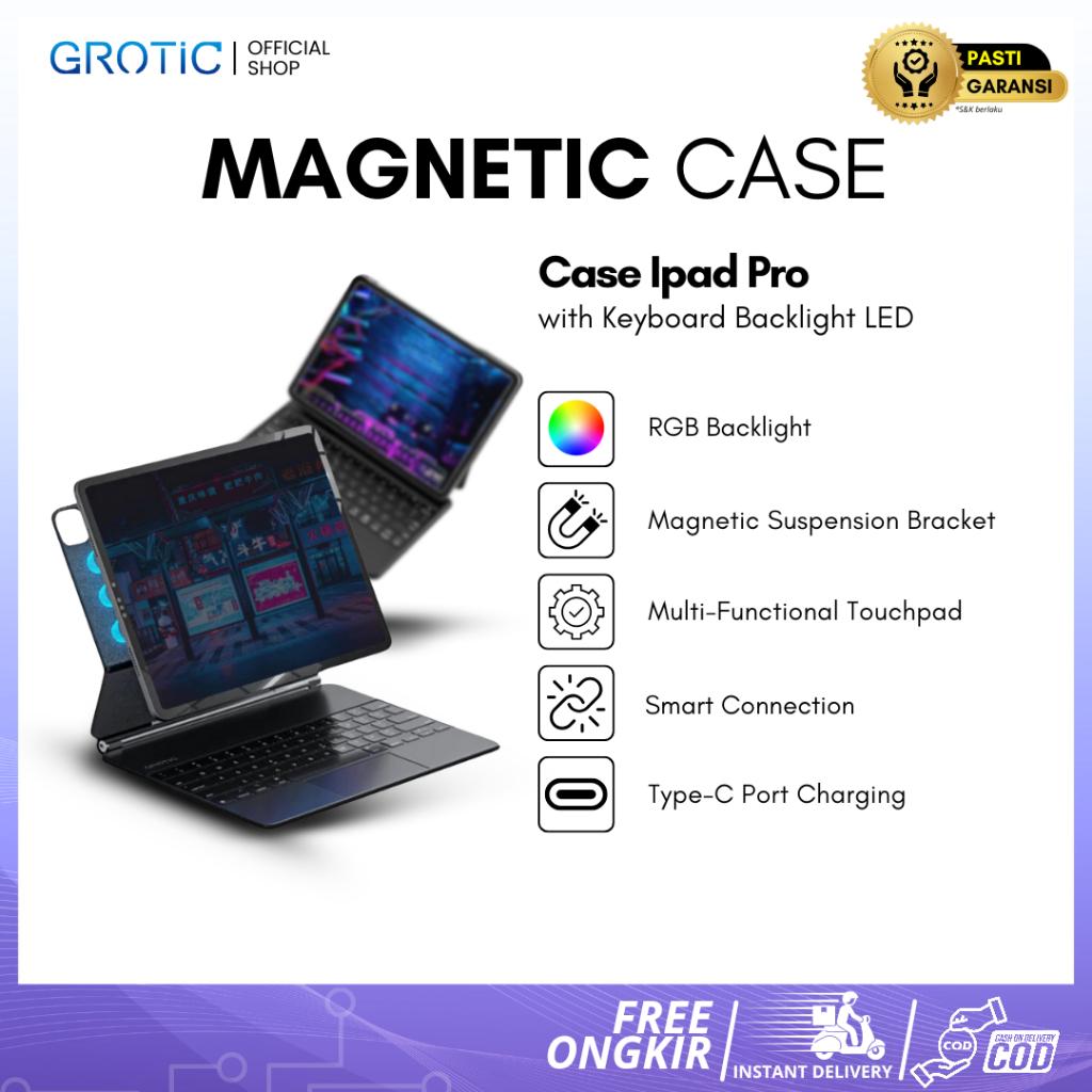 GROTIC Touchpad Keyboard Magnetic Case Key Backlight for iPad Pro 10.9'' 11''