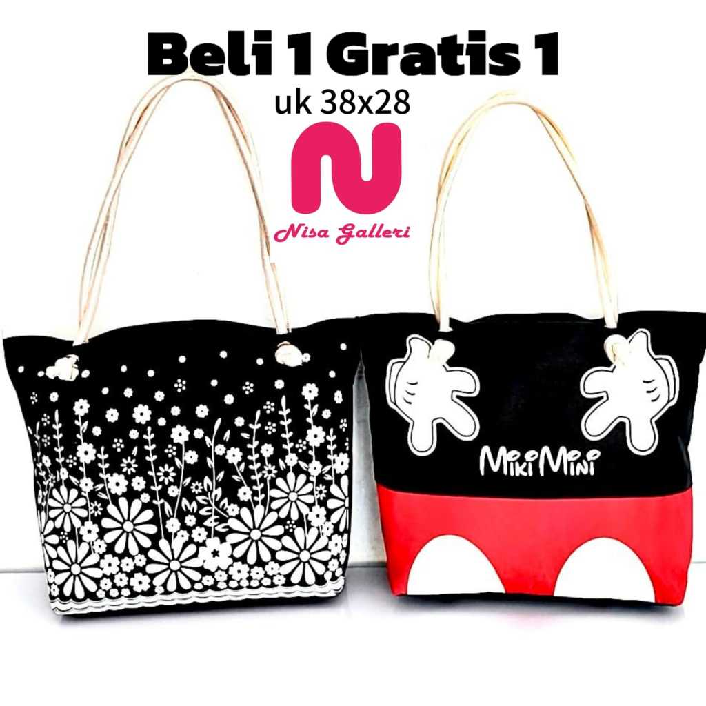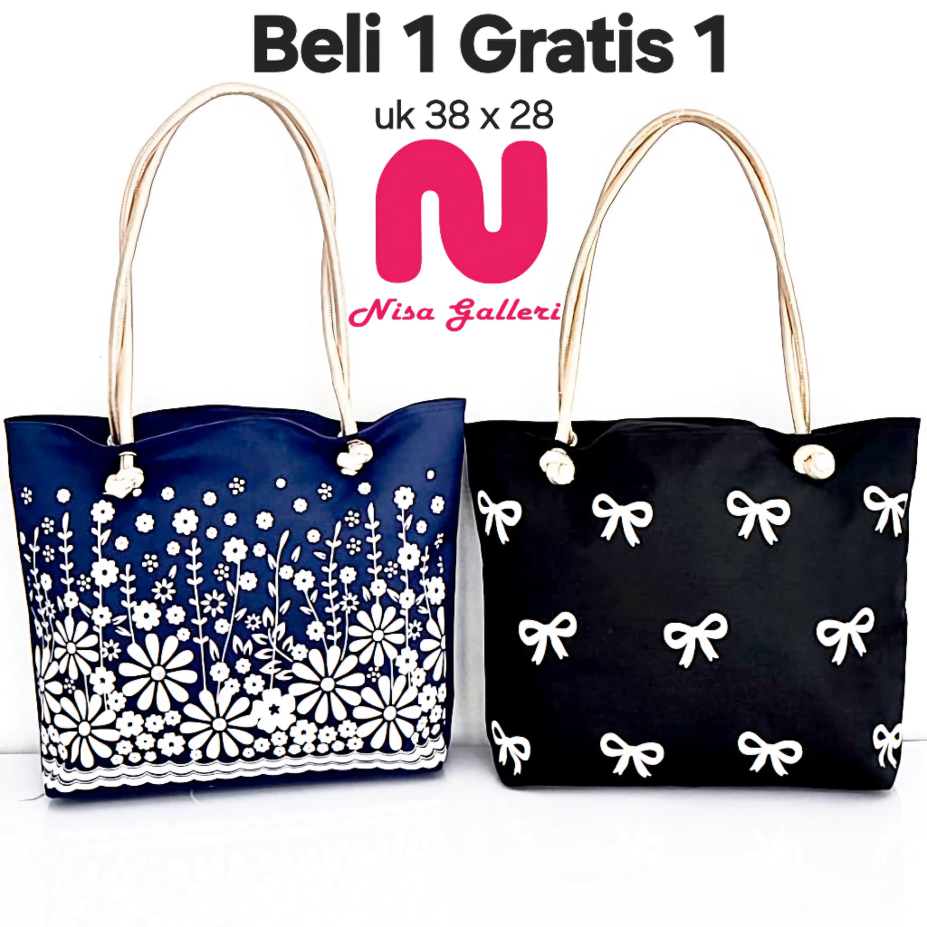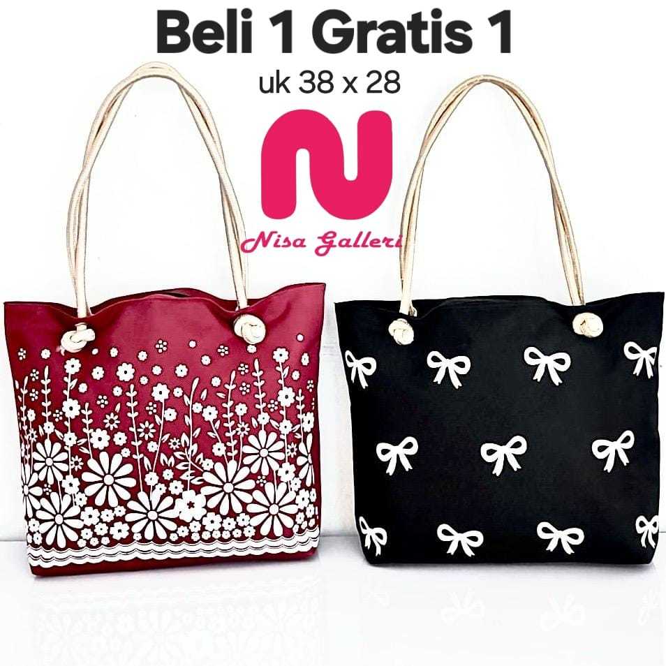 NISA GALLERI Tas Wanita Terbaru Tote Bag Tali Sumbu Tas Kuliah Tas Kerja Kekinian Motif Aster