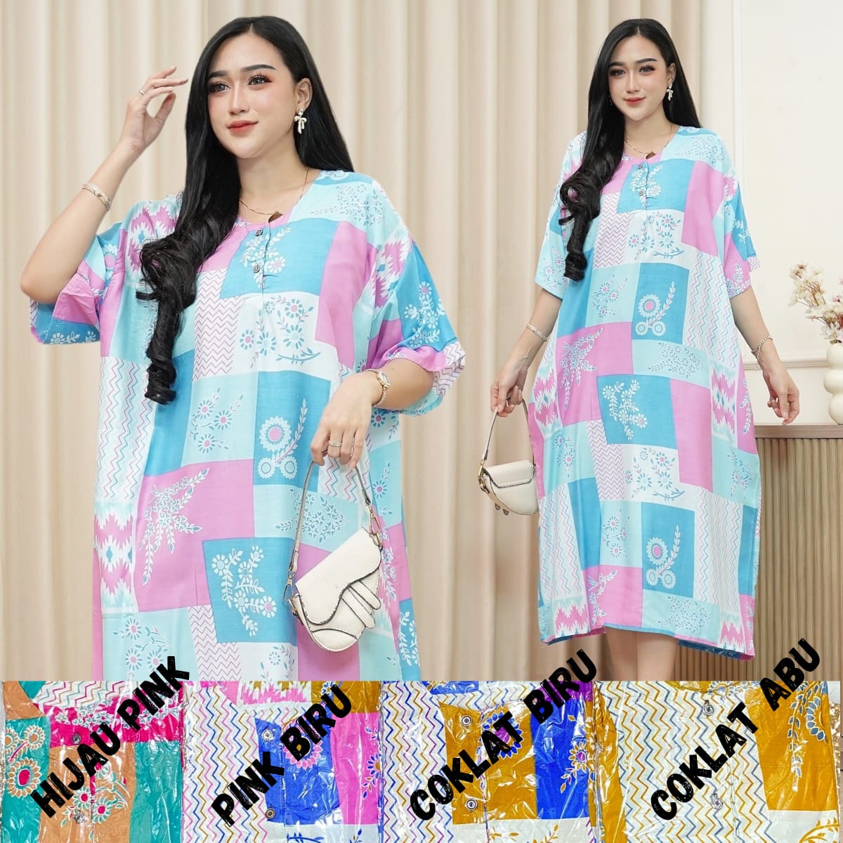 Daster Wanita Jumbo Flower Box LD 120-130 PJ 115 Dada Kancing Bumil Busui Bahan Rayon Kualitas Halus Adem.