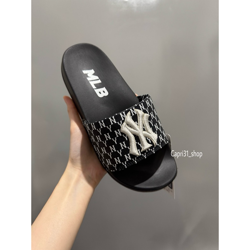 Sandal Kulit Yankees Black White Unisex Korea