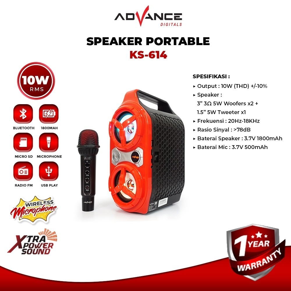 【Bisa dikirim hari ini】Advance Speaker Bluetooth Karaoke Extra Power 6.5 inch+1xMic Wireless 614