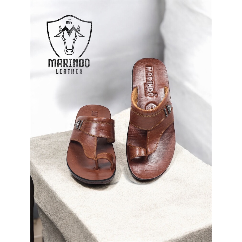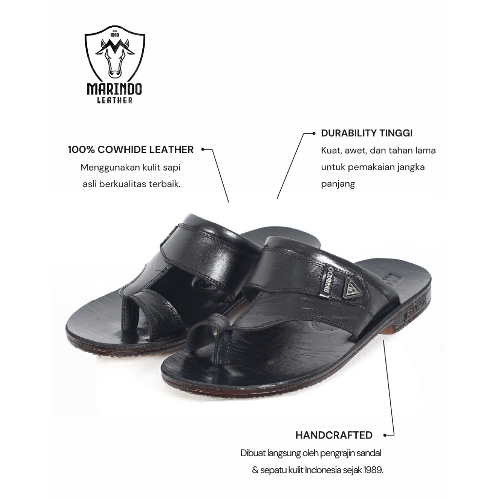 Sandal Pria | Sandal Kulit Pria Perkasa | 100 PERSEN Kulit Asli | Gratis Ongkir | Marindo "Veteran" Tan & Black