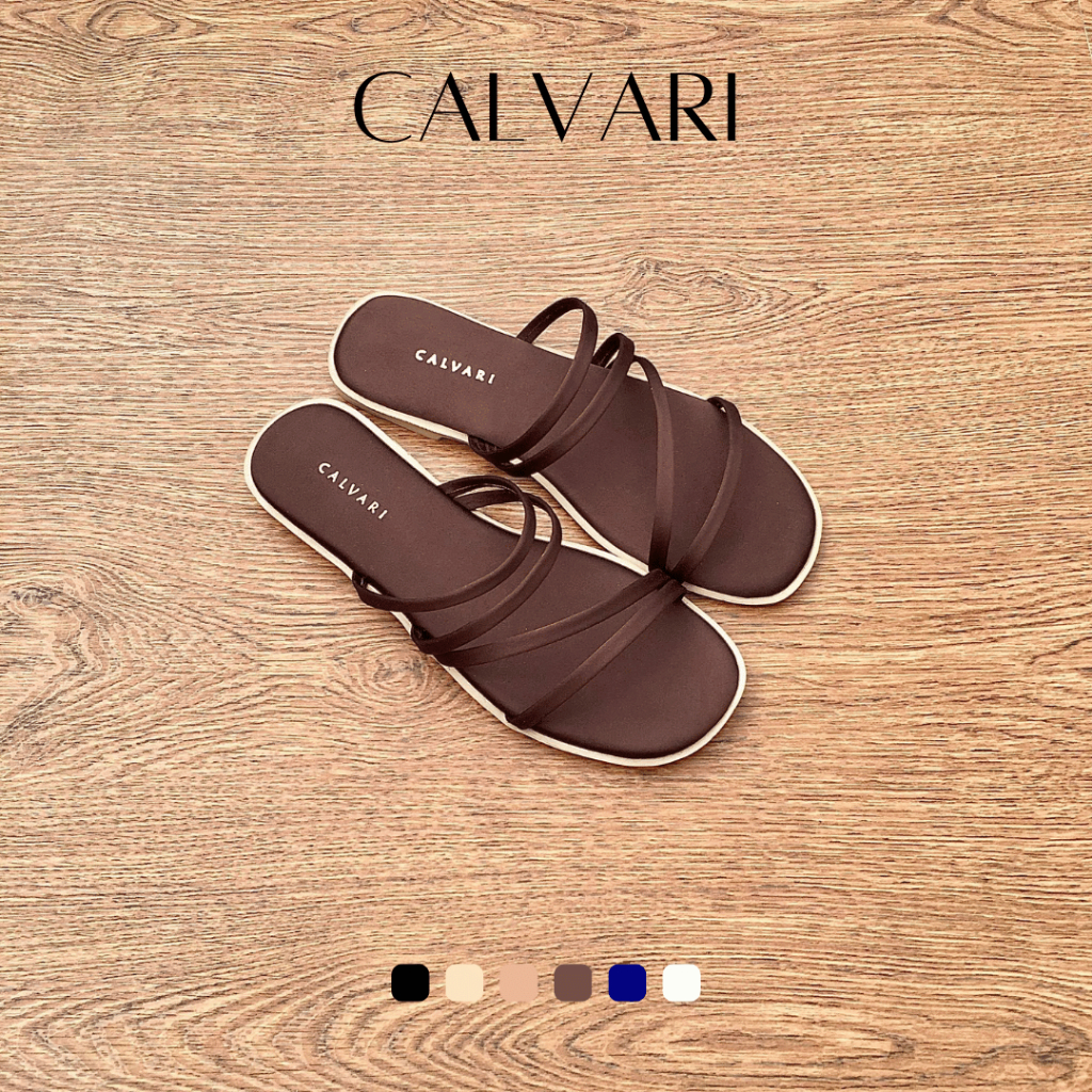 CALVARI - STACY Sandal Wanita Korea Teplek Casual Kekinian Size 36 - 40 Sendal Flat Cewek Kasual