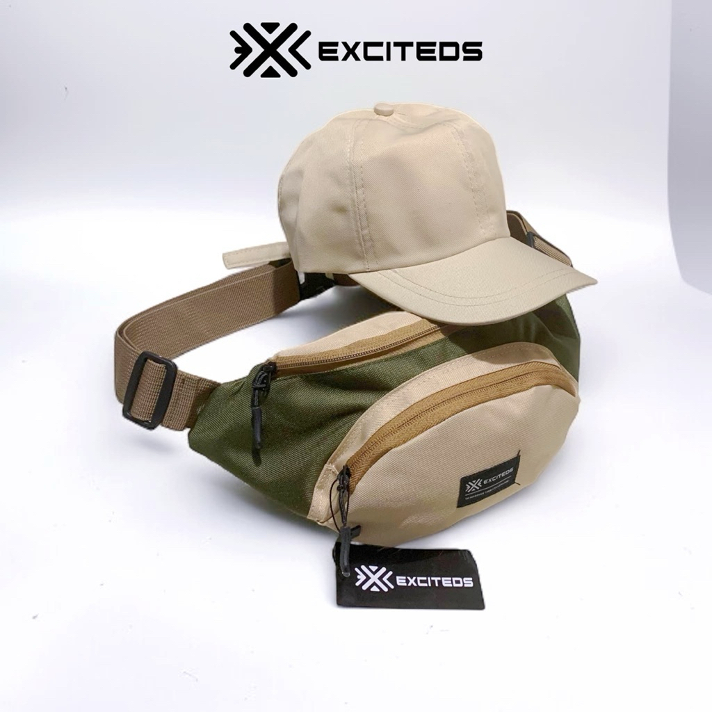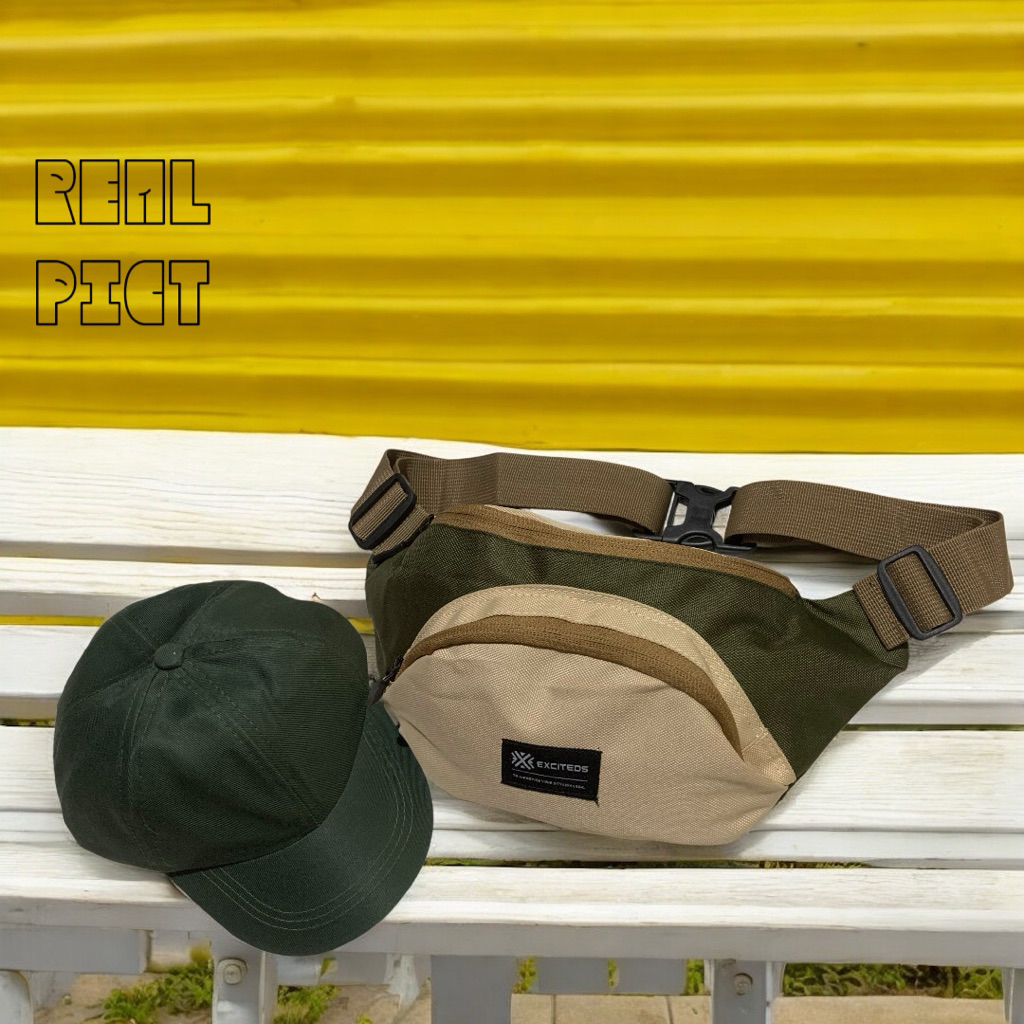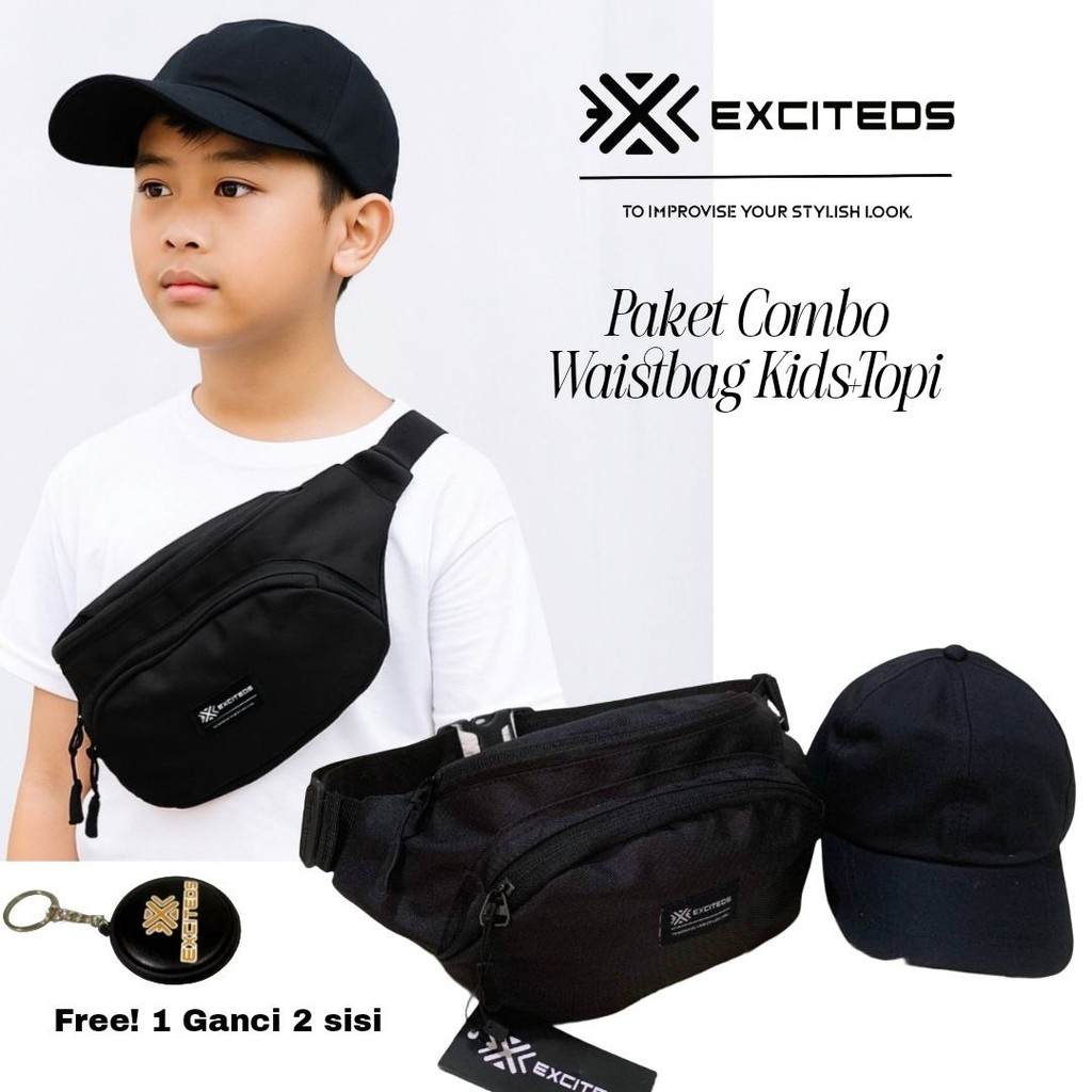 Tas Selempang Anak Laki Laki Perempuan Exciteds Set Topi Baseball Krem Keren Waist bag Kids Unisex