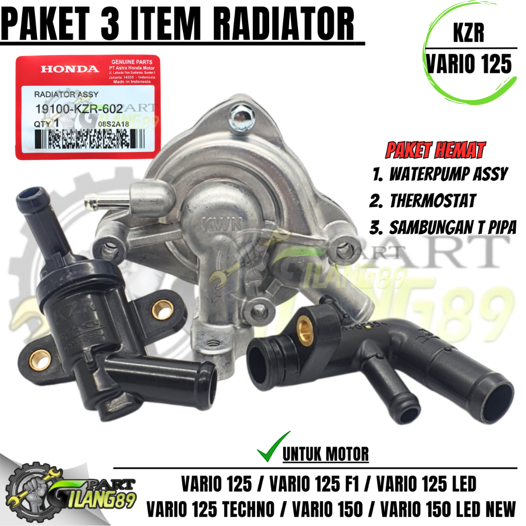 PAKET 3ITEM KZR THERMOSTAT VARIO 125 / WATERPUMP A55Y VARIO 125 / PIPA SAMBUNGAN T RADIATOR VARIO 125,150,PCX 150,PCX 15
