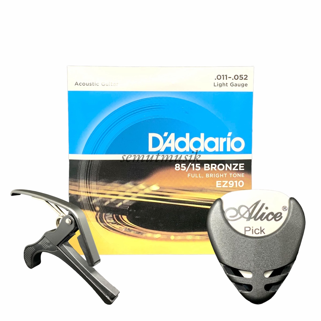 Senar Gitar Akustik String D'Addario + Capo + Pick Holder