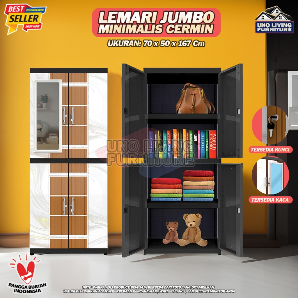 Jumbo Lemari Pakaian Plastik Naiba MSC FIT dengan Cermin Lemari Susun 4 Modern - FULL KUNCI