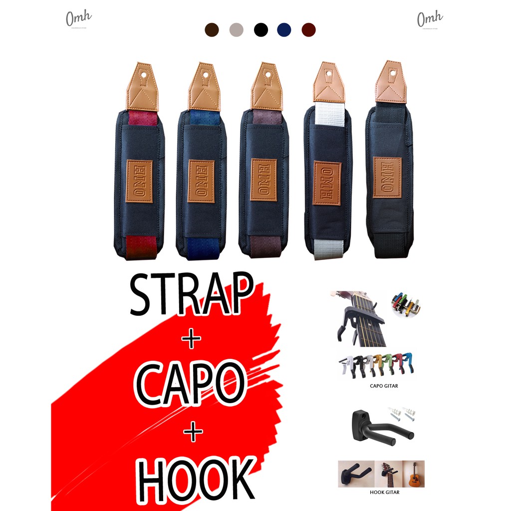 STRAP GITAR + CAPO + HOOK/PAKET Gitar Free Pick Gitar/ Paket Murah Lengkap
