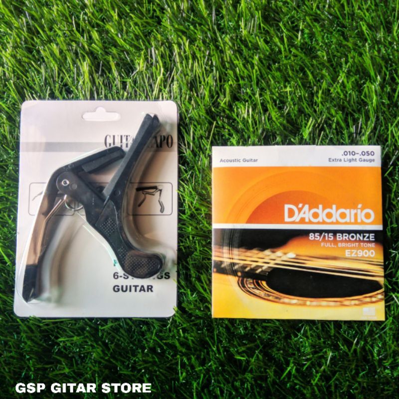 Promo Paket Bundling Capo Gitar Warna Random & Satu Set Senar Import EZ900