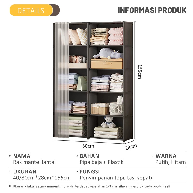Lemari Pakaian Sederhana Storage Rack Wardrobe Dengan Tirai Wardrobe Portable Rak Buku Lemari Serbaguna Minimalis Rak Multifungsi Dengan Tirai Gorden