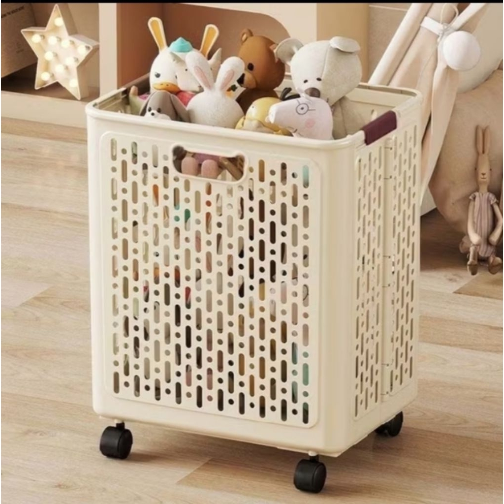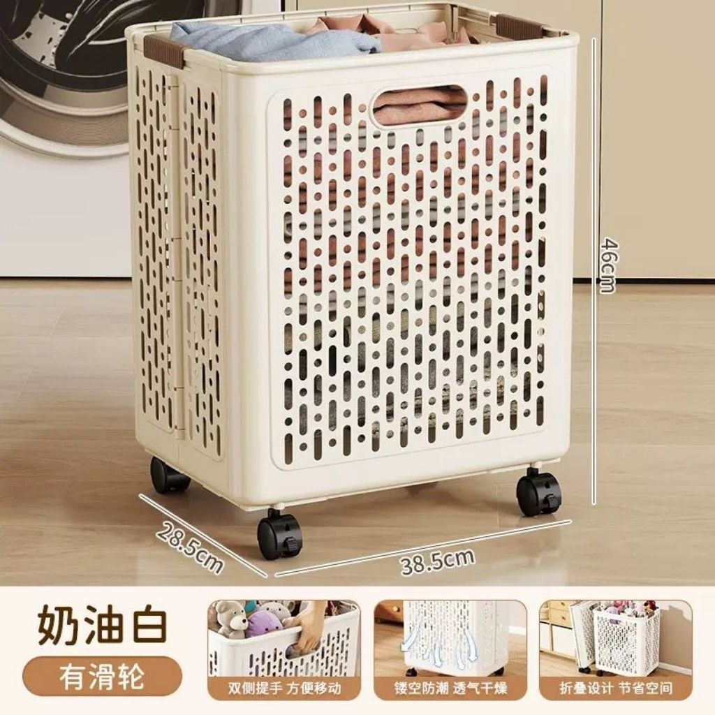 Keranjang Lipat Serbaguna Tempat Baju Pakaian Kotor Dengan Roda Keranjang