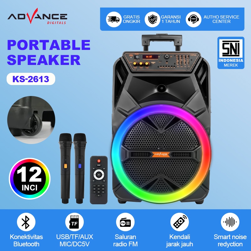 Advance KS-2613 Speaker Bluetooth Portable 12 Inch Free 2 Microphone Wireless Garansi Resmi Advance